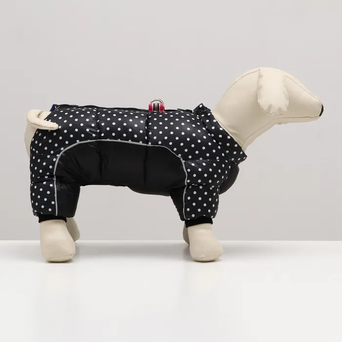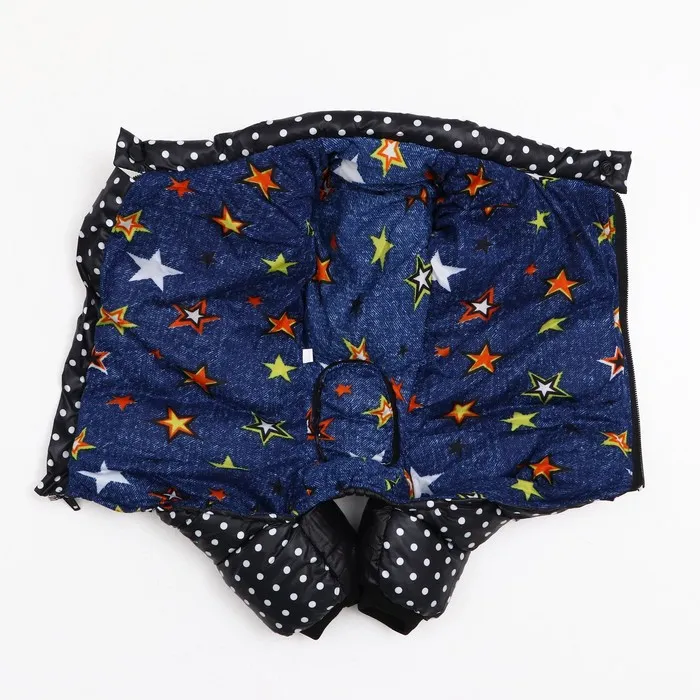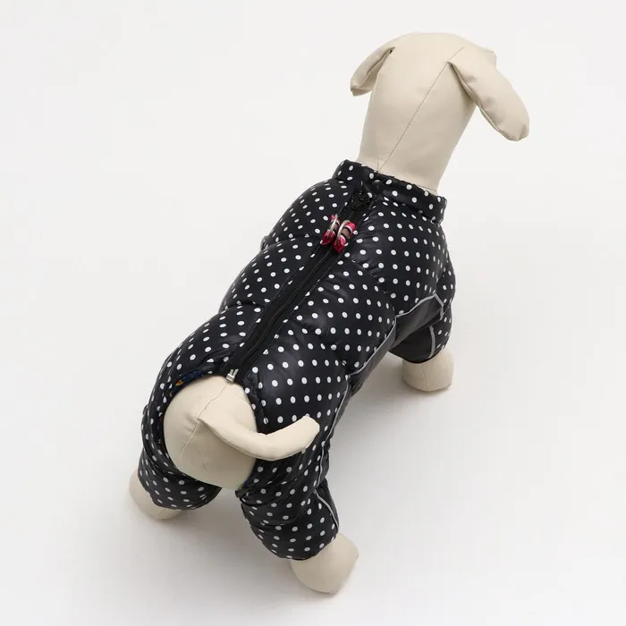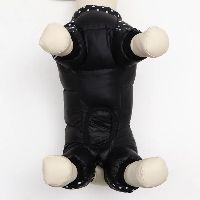 Зимний комбинезон для собак застегивается молнией на спине, благодаря этому животик питомца максимально защищен от ветра.