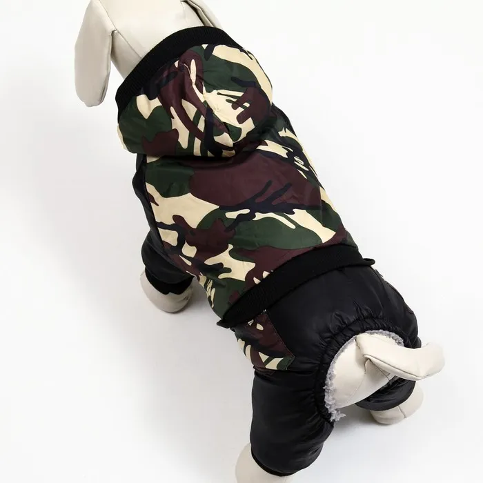 Комбинезон с меховой подкладкой из водоотталкивающей и ветрозащитной ткани с застежками на кнопках снизу идеален для прогулок в холодную, морозную, сырую погоду и защитит вашу собаку от холода, снега и грязи. Подходит для мальчиков и девочеr. Капюшон с мехом спасает от задува ветра. Интересный дизайн и необычные цвета выделят вашего любимца и сделают ваши прогулки комфортнее. Сезон весна - осень - зима.