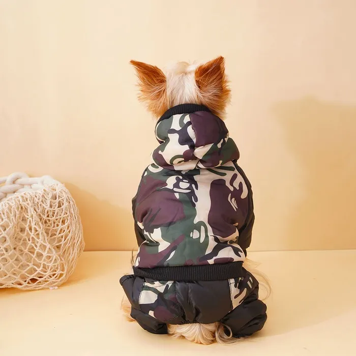 Комбинезон с меховой подкладкой из водоотталкивающей и ветрозащитной ткани с застежками на кнопках снизу идеален для прогулок в холодную, морозную, сырую погоду и защитит вашу собаку от холода, снега и грязи. Подходит для мальчиков и девочеr. Капюшон с мехом спасает от задува ветра. Интересный дизайн и необычные цвета выделят вашего любимца и сделают ваши прогулки комфортнее. Сезон весна - осень - зима.
