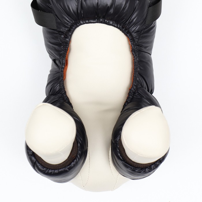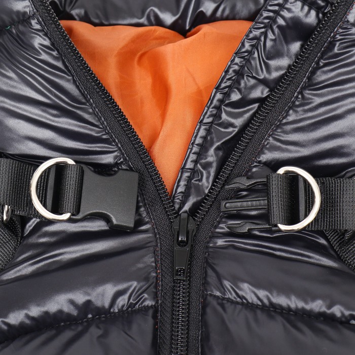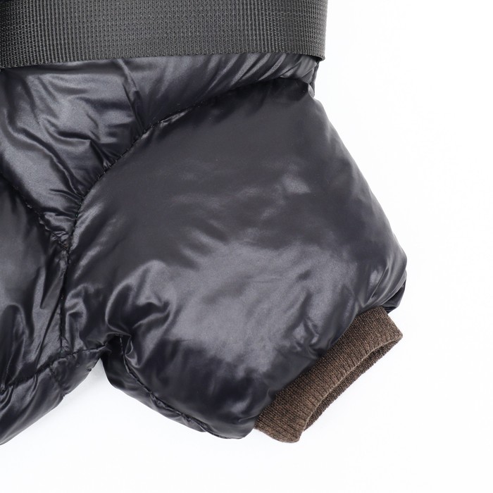 Комбинезон оснащен регулируемой шлейкой, которая позволяет точно подогнать комбинезон под размеры вашей собаки. На ножках комбинезона есть манжеты, они предназначены для того, чтобы обеспечить дополнительную защиту от холода и ветра, а также предотвратить попадание снега или грязи внутрь комбинезона. Манжеты плотно облегают ножки собаки, не ограничивая движения и обеспечивая комфортную посадку.
