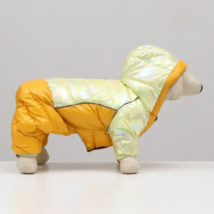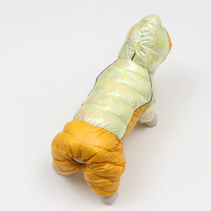 Комбинезон из водоотталкивающей и ветрозащитной ткани с застежками на кнопках снизу идеален для прогулок в холодную, морозную, сырую погоду и защитит вашу собаку от холода, снега и грязи. Подходит для мальчиков и девочек. Комбинезонс плотным синтепоновым подкладом. Интересный дизайн и необычные цвета выделят вашего любимца и сделают ваши прогулки комфортнее. Сезон весна - осень - зима.