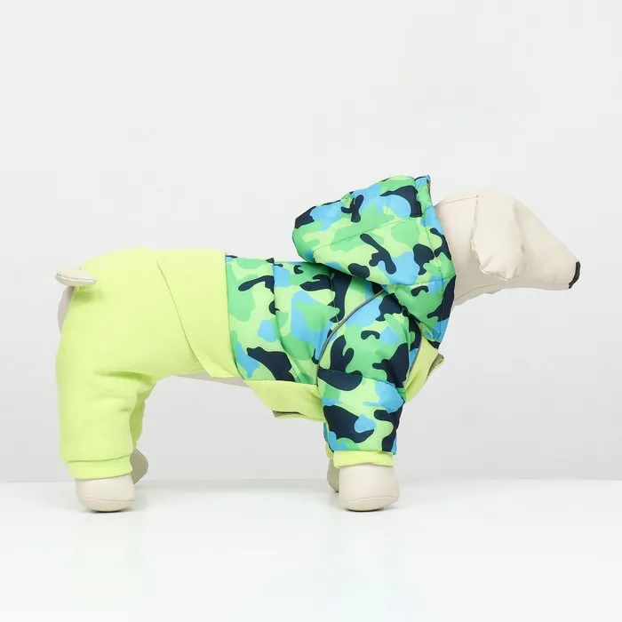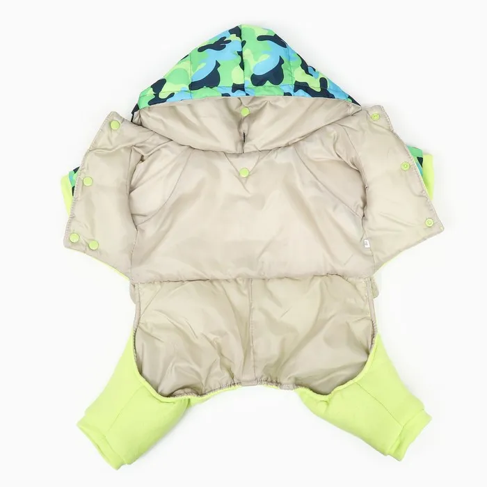 Комбинезон для собак "Go-Иди" в зеленом камуфляжном цвете - это идеальное решение для вашего активного пушистого друга. Сочетание дюспо в верхней части и фланели в нижней части обеспечивает оптимальную защиту и тепло в холодную погоду.