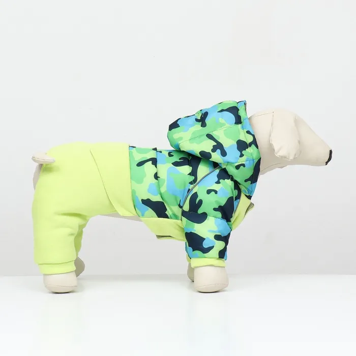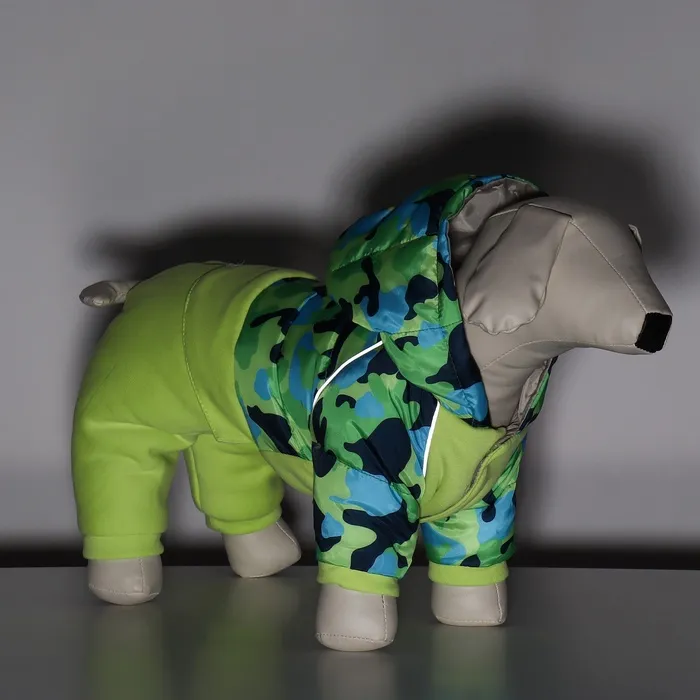 Комбинезон для собак "Go-Иди" в зеленом камуфляжном цвете - это идеальное решение для вашего активного пушистого друга. Сочетание дюспо в верхней части и фланели в нижней части обеспечивает оптимальную защиту и тепло в холодную погоду.