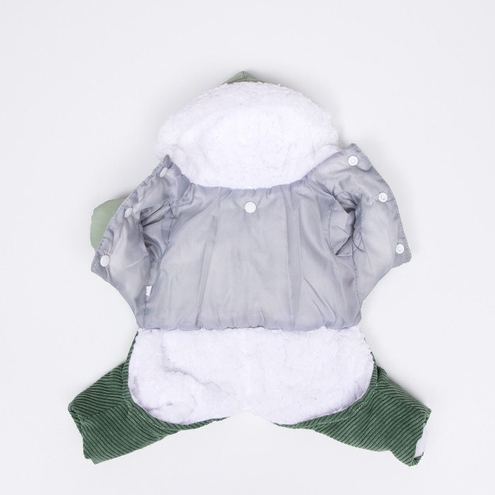 Комбинезон для собак «Малыш» — это уютная зимняя одежда для вашего питомца. Подходит для активных прогулок в прохладную погоду, обеспечивая тепло и комфорт. Удобные застёжки на кнопках позволяют быстро надеть комбинезон и легко снять его при необходимости. Серо-зелёный цвет выглядит стильно и практично, а мягкий материал не натирает и не сковывает движения. Идеально подходит для маленьких собак соответствующего размера (ДС 25 см, ОГ 34 см, ОШ 24 см). Стильно, просто, надёжно — как будто сшито специально для вашего четвероногого друга.