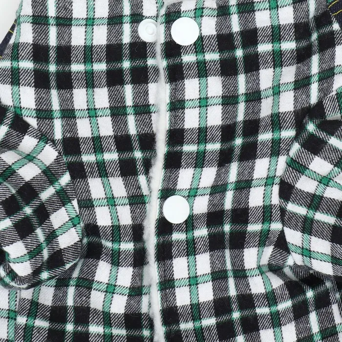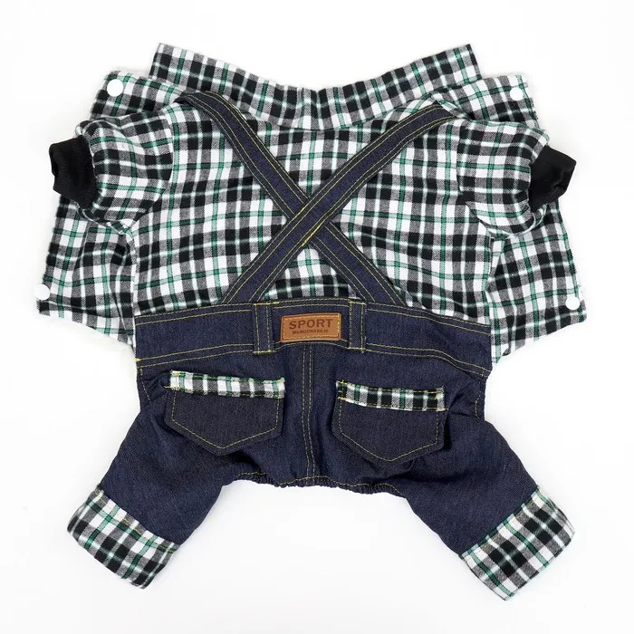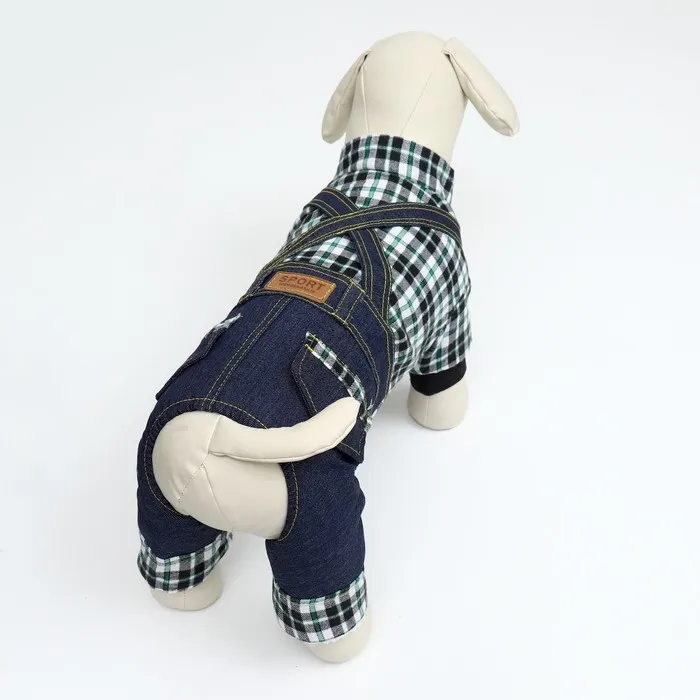 Элегантный дизайн комбинезона выполнен в виде джинсов и рубашки в клетку, который придает вашему питомцу оригинальный вид на прогулке.
