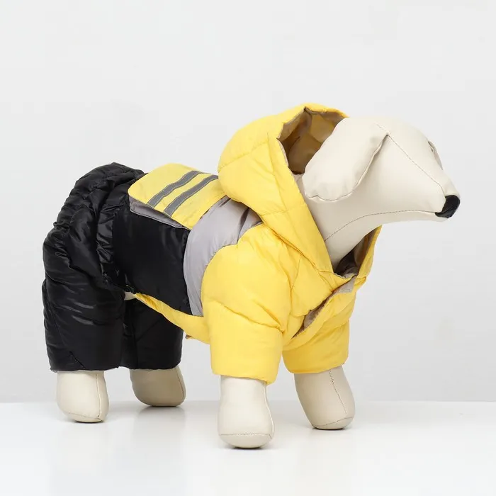 На ножках находятся манжеты, специально разработанные для обеспечения дополнительной теплоты и защиты лап собаки от мокрой и грязной земли.