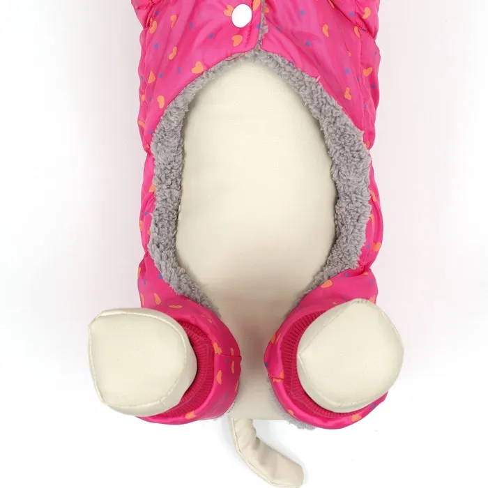На ножках находятся манжеты, специально разработанные для обеспечения дополнительной теплоты и защиты лап собаки от мокрой и грязной земли.