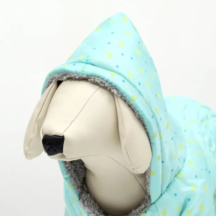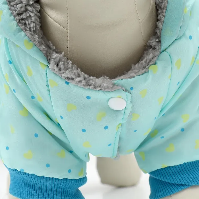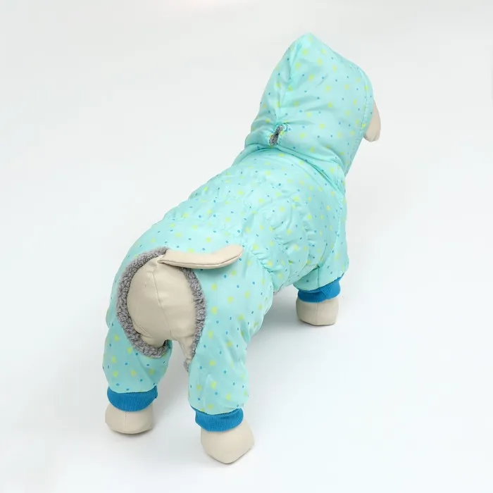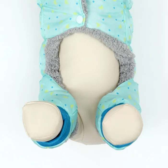 На ножках находятся манжеты, специально разработанные для обеспечения дополнительной теплоты и защиты лап собаки от мокрой и грязной земли.