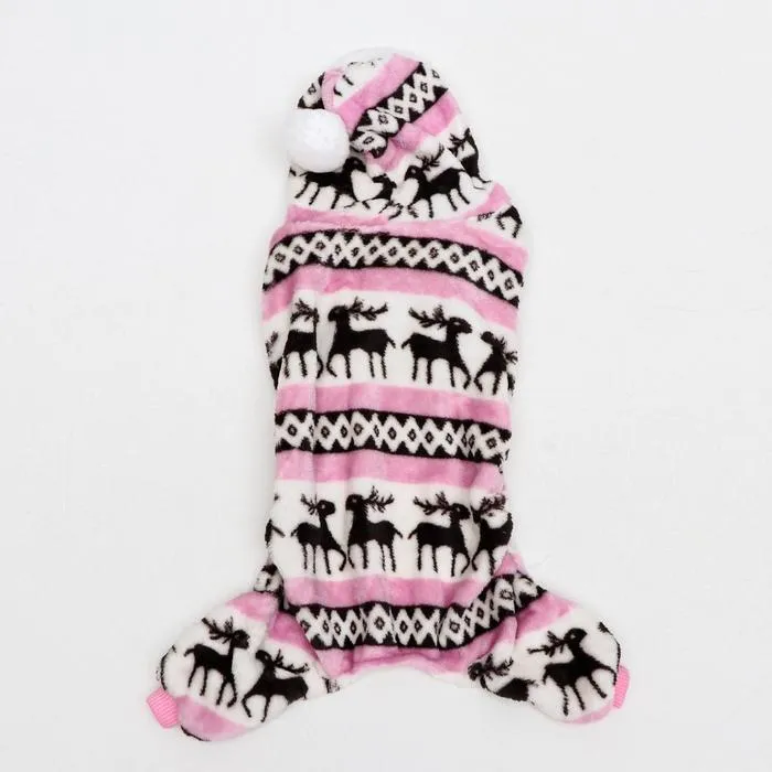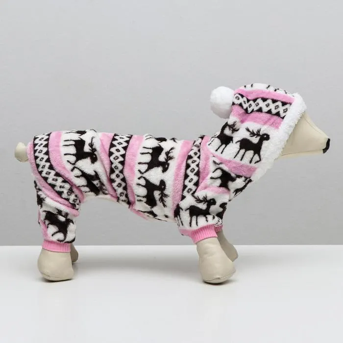 Комбинезон "Олени" с капюшоном, размер XL (ДС 40 см, ОГ 50 см, ОШ 40 см), розовый