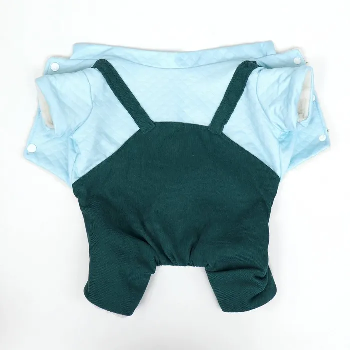 Комбинезон застегивается на удобные кнопки, это позволяет легко и быстро одевать и снимать его, не вызывая дискомфорта у вашего питомца.