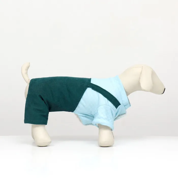 Стильный дизайн комбинезона выполнен в виде брюк и рубашки, он выделит вашего питомца среди других собак на прогулке и привлечет внимание окружающих своим элегантным видом.