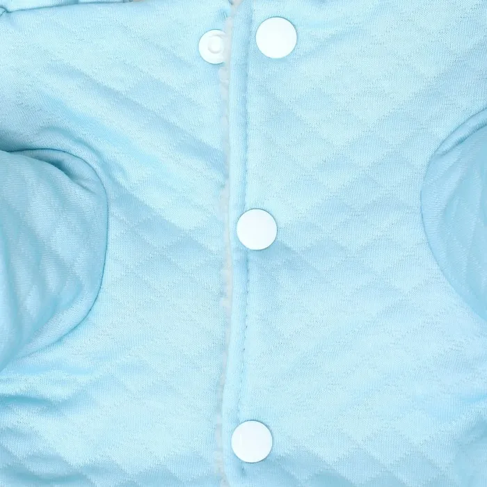 Комбинезон застегивается на удобные кнопки, это позволяет легко и быстро одевать и снимать его, не вызывая дискомфорта у вашего питомца.