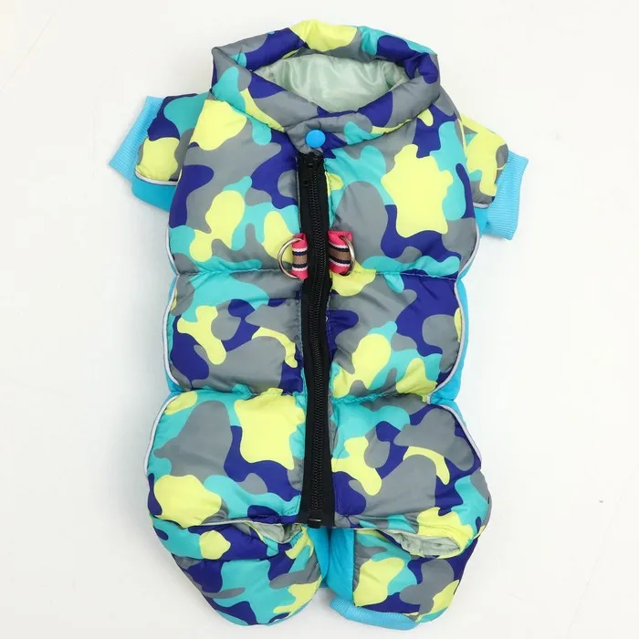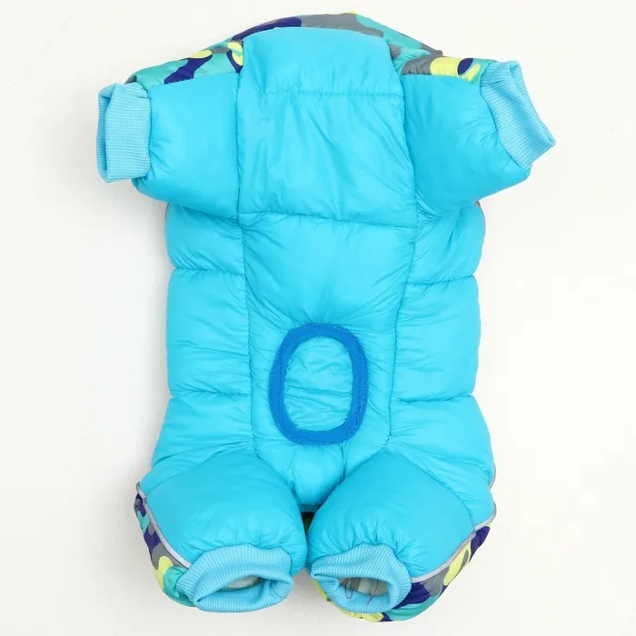 Зимний комбинезон для собак застегивается молнией на спине, благодаря этому животик питомца максимально защищен от ветра.