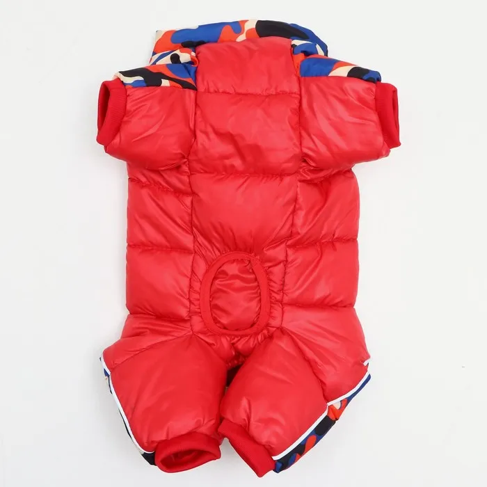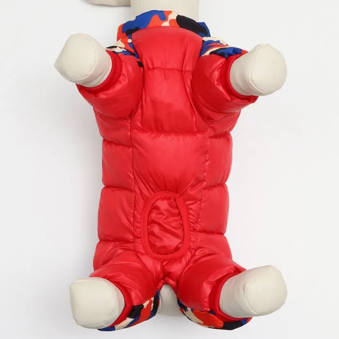 Зимний комбинезон для собак застегивается молнией на спине, благодаря этому животик питомца максимально защищен от ветра.