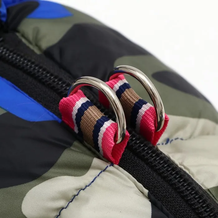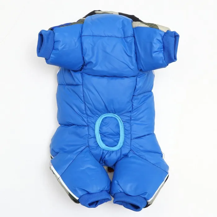 Зимний комбинезон для собак застегивается молнией на спине, благодаря этому животик питомца максимально защищен от ветра.