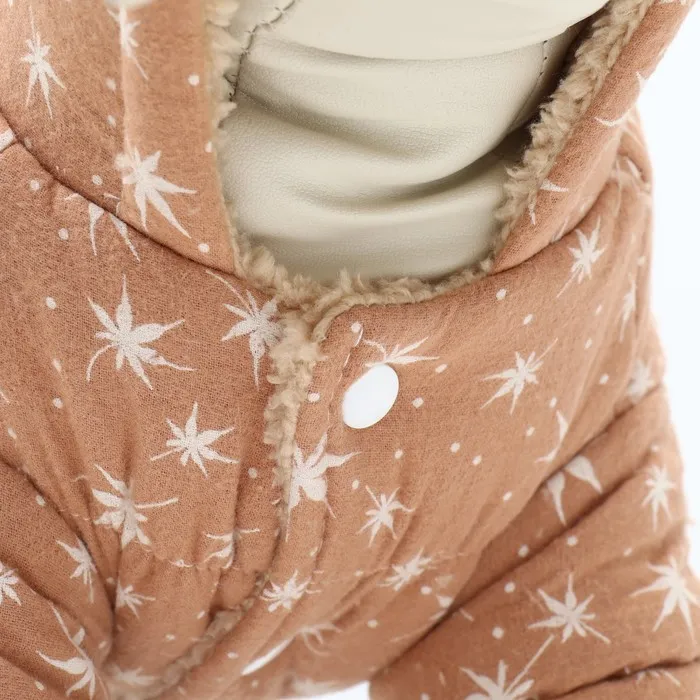Комбинезон оснащен капюшоном, который защищает вашего пушистого друга от ветра и холода. Кроме того, удобные клепки для застежек делают надевание и снятие комбинезона легкими и удобными. Комбинезон "Прогулка" - это не только функциональная одежда, но и стильный аксессуар, который сделает вашего питомца модным и теплым во время прогулок.