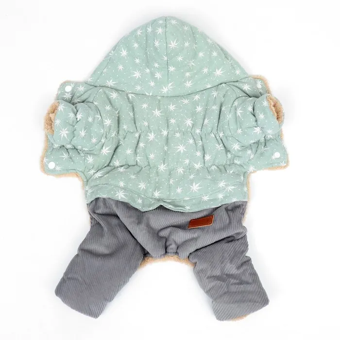 Комбинезон оснащен капюшоном, который защищает вашего пушистого друга от ветра и холода. Кроме того, удобные клепки для застежек делают надевание и снятие комбинезона легкими и удобными. Комбинезон "Прогулка" - это не только функциональная одежда, но и стильный аксессуар, который сделает вашего питомца модным и теплым во время прогулок.