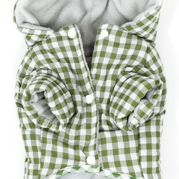 Модный теплый комбинезон для собак мелких и средних пород на холодное время года. Выполнен из непромокаемого материала - дюспо с теплым подкладом из мягкого флиса. Комбинезон универсален, подходит как для девочек, так и для мальчиков. Благодаря широкому размерному ряду, вы сможите подобрать наиболее подходящий для вашего питомца комбинезон (РЕКОМЕНДАЦИЯ: Каждый питомец индивидуальный, просим перед покупкой измерить параметры своего любимца). Зимний комбинезон для собак застегивается кнопками на животе, благодаря этому животик питомца максимально защищен от ветра. Внешне комбинезон выглядит стильно, украшен накладными карманами и мягким воротником.Будьте уверены, что ваш четвероногий друг будет чувствовать себя в тепле и уюте, а также привлекать внимание на улице!