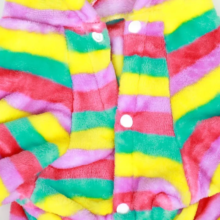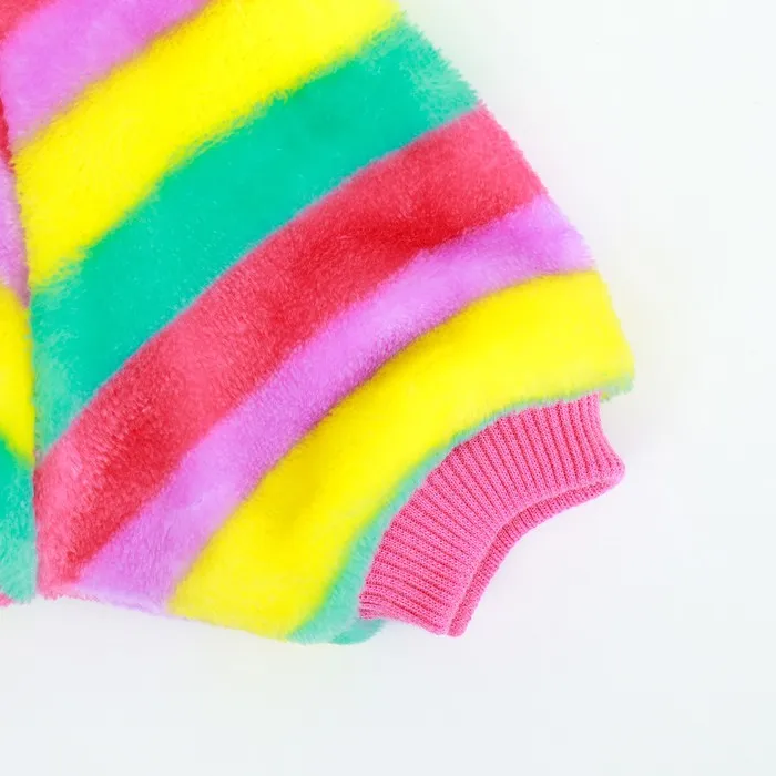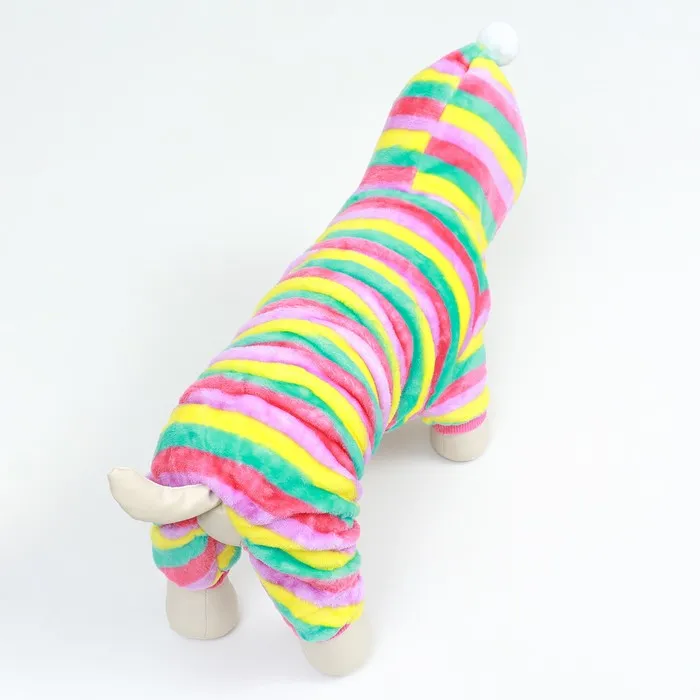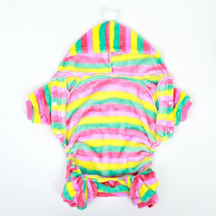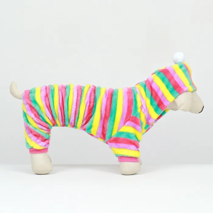 Представляем вам полосатый комбинезон «Радуга» с капюшоном для собак – идеальное сочетание стиля и комфорта для вашего четвероногого друга!Подойдёт для собак средних пород.Этот уникальный комбинезон выполнен в ярких и красочных цветах радуги, которые привлекут внимание в любом месте. Он отлично подчеркнет индивидуальность вашего питомца и сделает его настоящей звездой на прогулке.Комбинезон изготовлен из высококачественных материалов, обеспечивающих не только комфорт, но и защиту вашей собаки в холодное время года. Костюм имеет прочные швы, которые гарантируют долговечность изделия и устойчивость к истиранию.Капюшон не только добавляет модный акцент, но и защищает голову вашей собаки от холодного ветра и дождя. Комбинезон легко надевается и снимается. Кроме того, он имеет эластичные резинки по брючинам и манжетам, обеспечивающие идеальную посадку, предотвращая проникновение холодного воздуха.Стильный и удобный комбинезон «Радуга» с капюшоном для собак – это не только модный аксессуар, но и надежная защита вашего питомца от холода и плохой погоды. Подарите своей собаке комфорт и стиль – заказывайте сейчас!