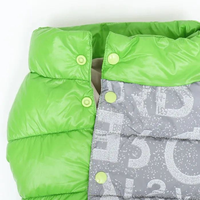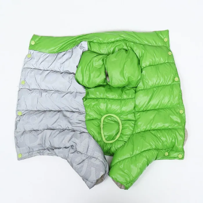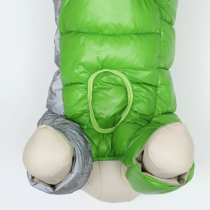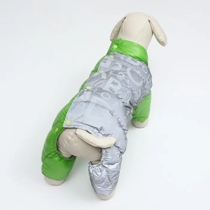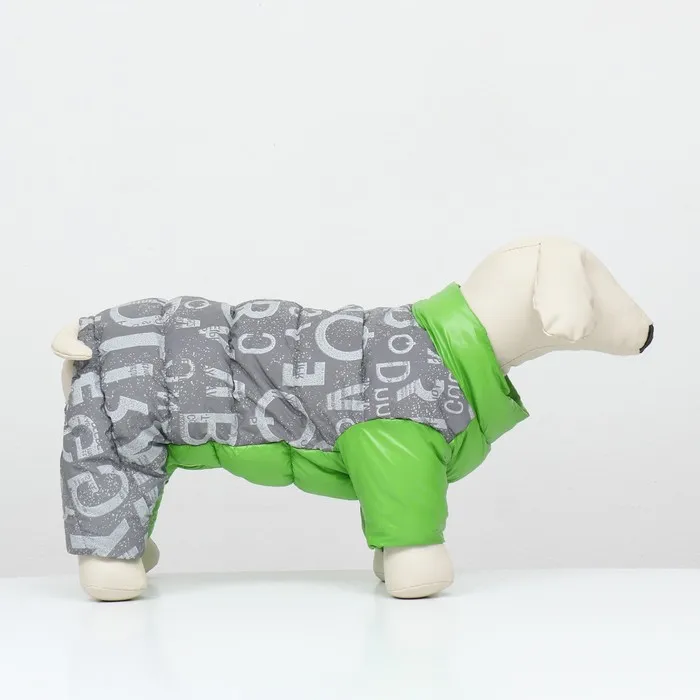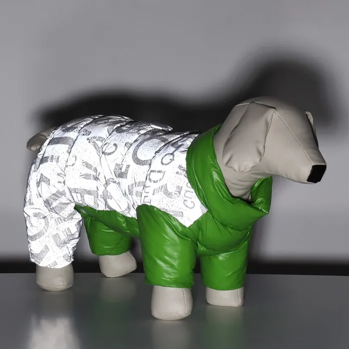 Комбинезон 'Ультра' в зеленом цвете - ваш верный спутник в прохладную и ветреную погоду. Он изготовлен из прочного нейлона с светоотражающей тканью на спине, обеспечивая безопасность и видимость в темное время суток. Внутри комбинезон утеплен синтепухом, что сохраняет тепло и комфорт вашего питомца.