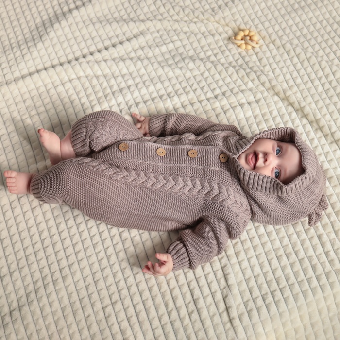 Комбинезон вязаный Крошка Я «Мишка», рост 62-68 см, бежевый — Характеристики