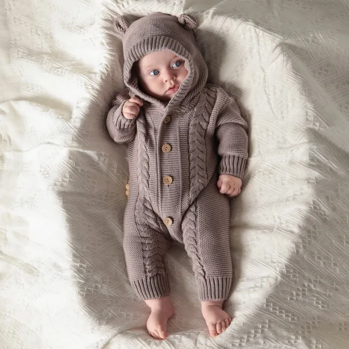 Комбинезон вязаный Крошка Я «Мишка», рост 74-80 см, бежевый — Характеристики
