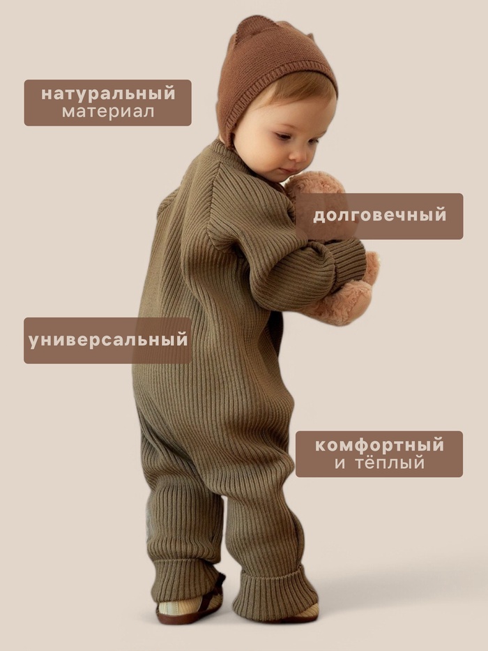Комбинезон вязаный SL Home, рост 74 - 80 см, цвет кофейный — Характеристики