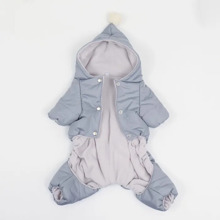 Комбинезон зимний для животных, флис, S (ДС 20-22, ОГ 32-34 см, ОШ 26 см), серый