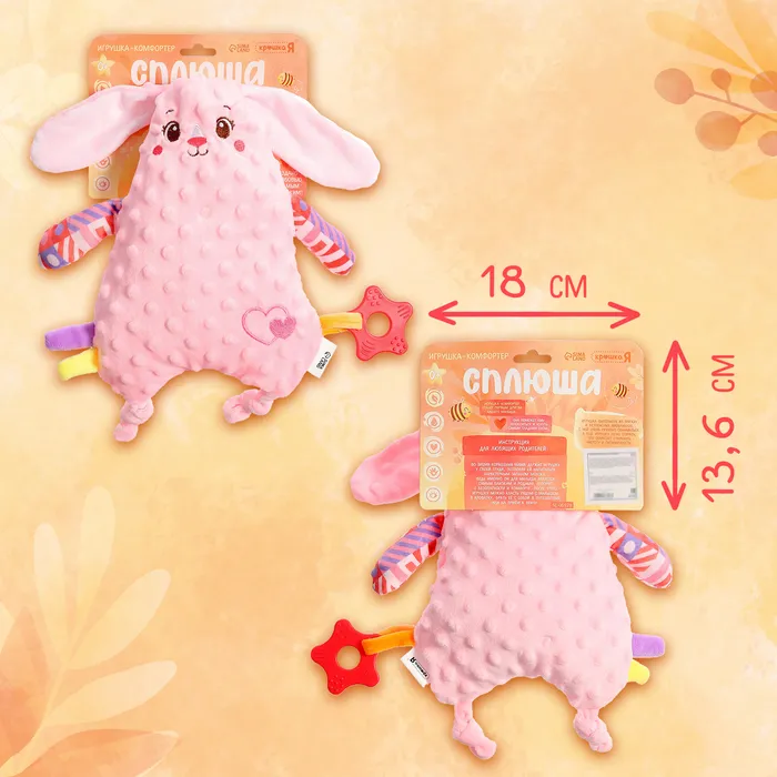 Игрушка-комфортер «Зайчик Сплюша» — это нежный и уютный спутник для малыша. Мягкий плюшевый зайчик станет верным другом, который поможет ребёнку чувствовать себя спокойно и защищённо.
