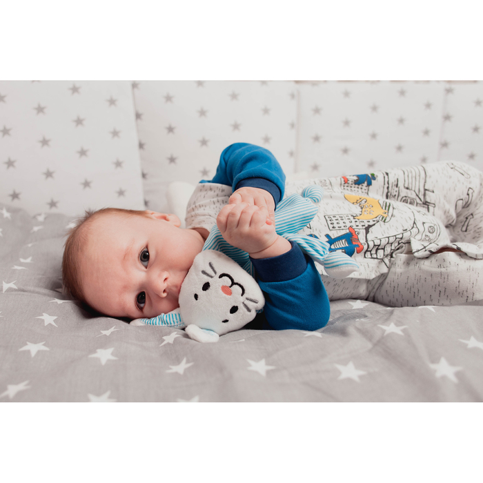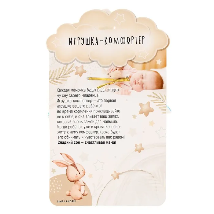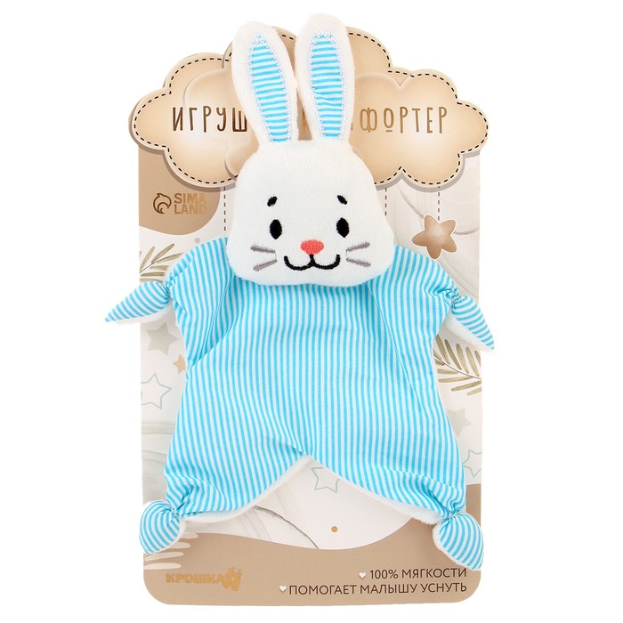 Такое изделие подойдёт ребёнку не только для крепкого сна, но и в качестве первой игрушки, так как оно не имеет твёрдых или острых деталей. Комфортер выполнен из плюшевой ткани, мягкой и приятной на ощупь.