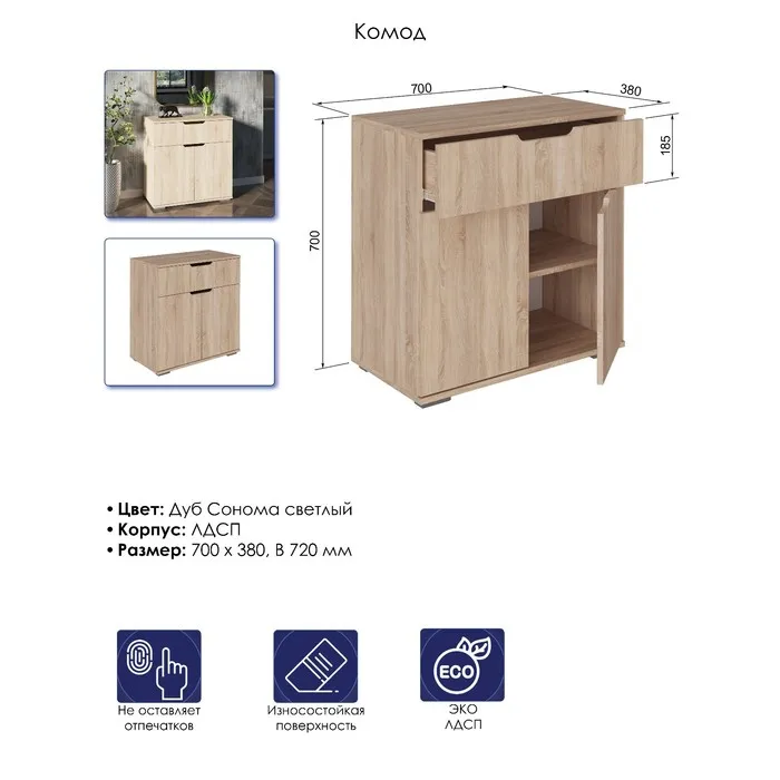 Комод 2Я-03, 700х380х720, Дуб сонома — Характеристики
