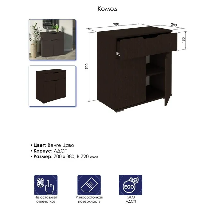 Комод 2Я-03, 700х380х720, Венге — Характеристики