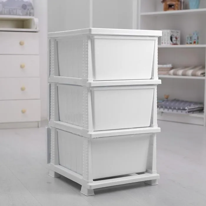 • В нём есть три объёмных легко выдвигающихся ящика.