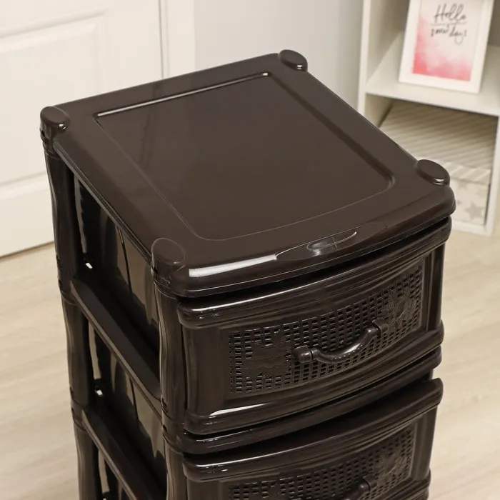 С помощью практичного пластикового комода вы правильно организуете хранение вещей. Изделие имеет жёсткую конструкцию за счёт цельных боковых стенок. Отсутствие острых углов делает его безопасным для ребёнка. Комод изготовлен из экологически чистого материала, не содержит вредных веществ.