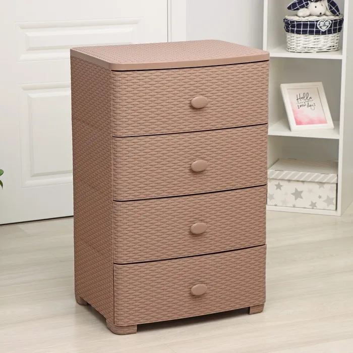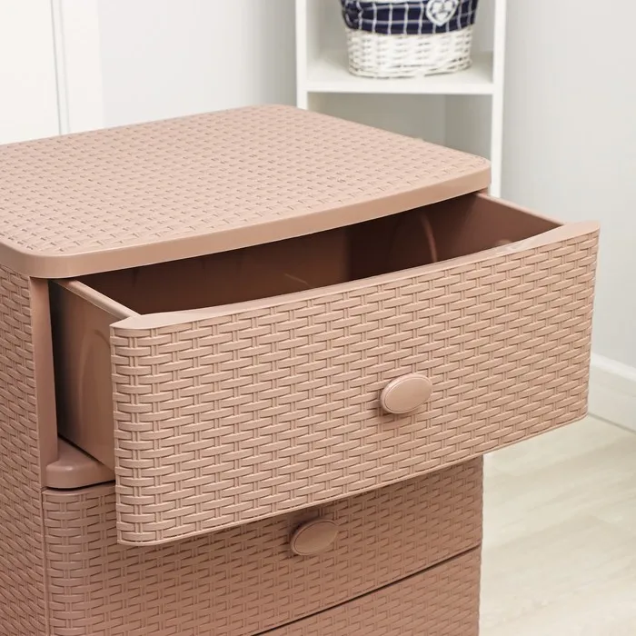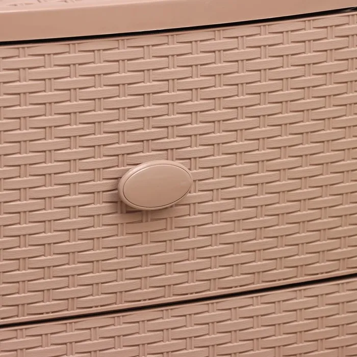 С помощью практичного пластикового комода вы правильно организуете хранение вещей. Изделие имеет жёсткую конструкцию за счёт цельных боковых стенок. Отсутствие острых углов делает его безопасным для ребёнка. Комод изготовлен из экологически чистого материала, не содержит вредных веществ.