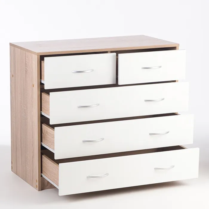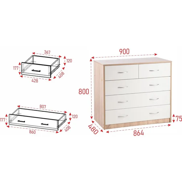 Комод 5 ящиков, 900х480х800, Дуб сонома/Белый — Характеристики
