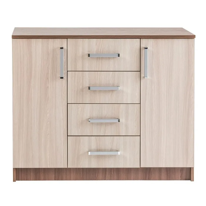 Комод «Аура» - это изысканное решение для современного интерьера. Классическое исполнение изделия позволяет идеально вписать его в вашу спальню, гостиную или прихожую. Его практичная и функциональная модель, оснащена, четырьмя выдвижными ящиками, и двумя боковыми ящиками с дверцами. Комод обладает хорошей устойчивостью, и станет прекрасным помощником для хранения личных вещей и одежды.