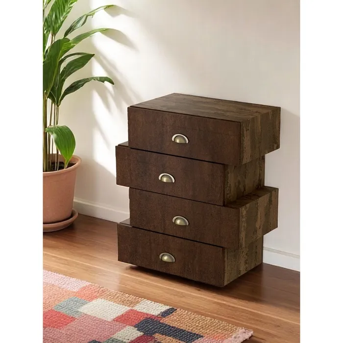 - Уникальный дизайн: Необычная форма комода, напоминающая наложенные друг на друга ящики, делает его ярким акцентом в интерьере.