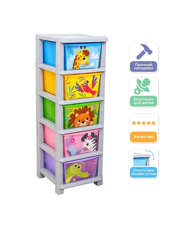 Детский комод «Веселый зоопарк» станет стильным и практичным дополнением любой детской комнаты. Яркий дизайн с животными мотивами привлекает взгляд и создаёт атмосферу веселья, способствуя самостоятельности ребёнка при выборе и хранении своих вещей. Такой комод отлично впишется как в повседневный интерьер, так и в игровую зону, помогая организовать пространство и развивать чувство порядка.