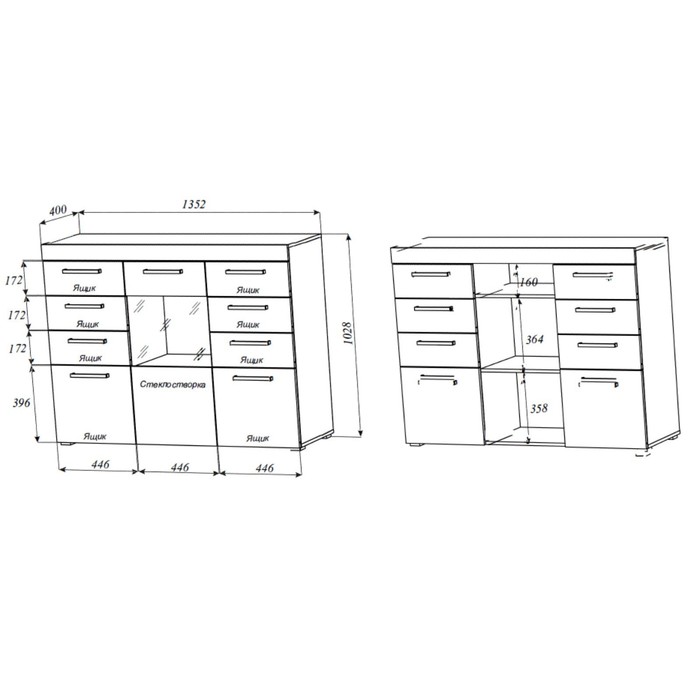 Комод для хранения «БАСТОН», 1352×400×1028 мм, цвет дуб делано/чёрный глянец — Характеристики