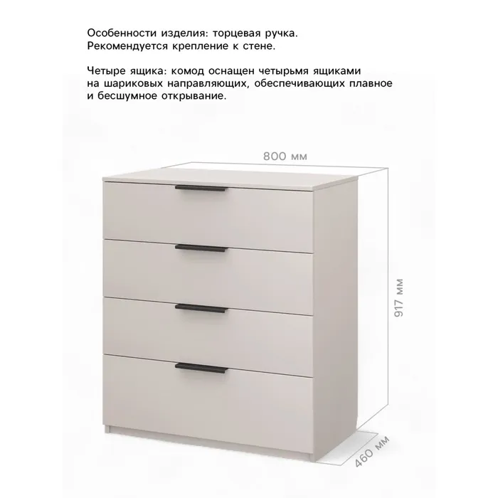 - Вместительность: Четыре просторных ящика предоставляют достаточно места для хранения различных вещей.