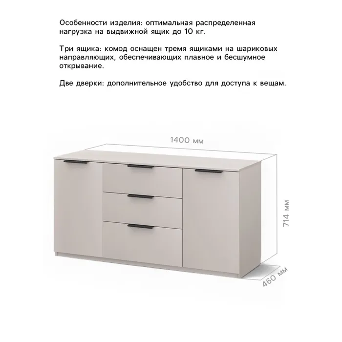Комод для хранения «Чарли 9.1», 1400×460×714 мм, цвет кашемир — Характеристики