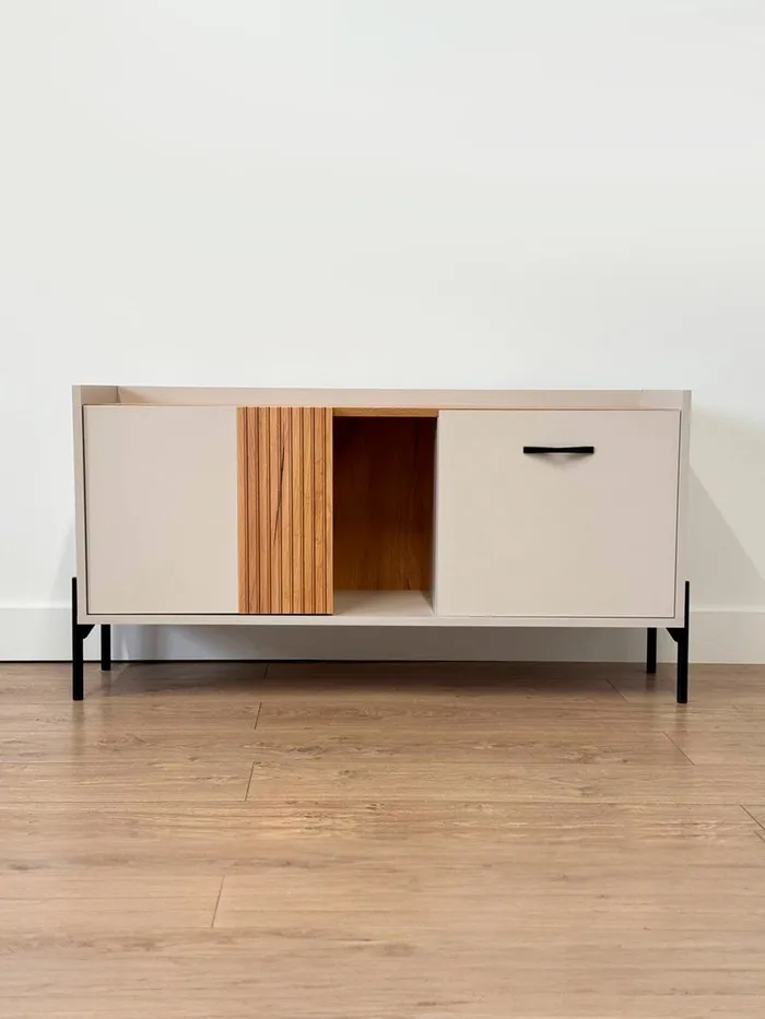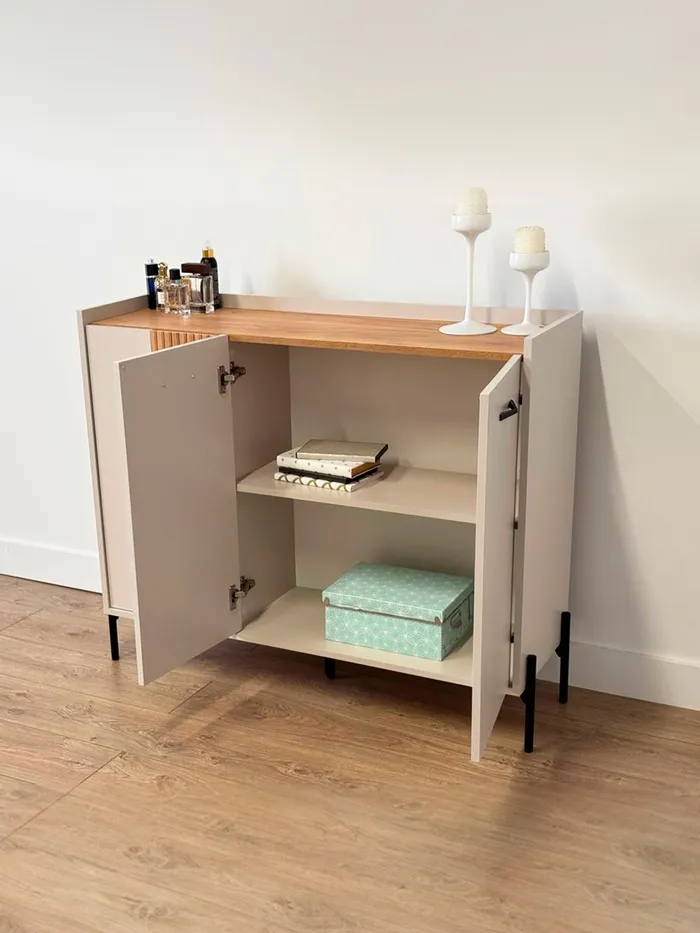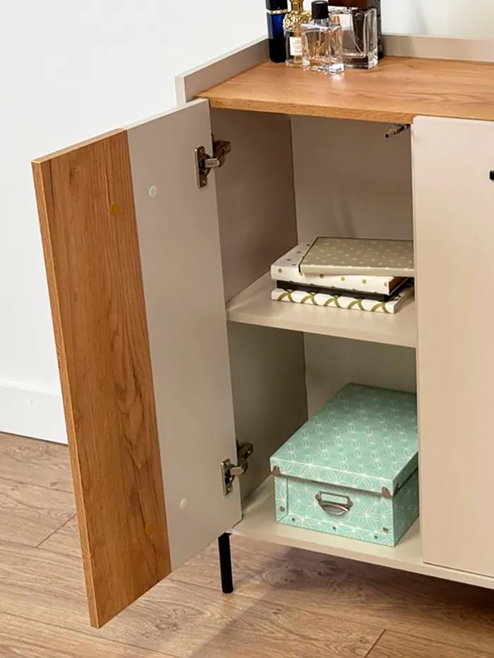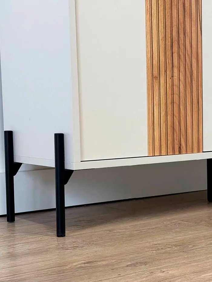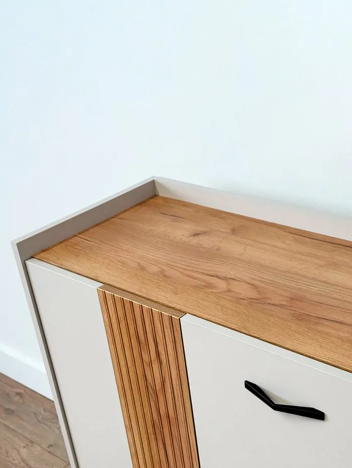 Вторая половина комода состоит из двух широких фасадов, скрытых под гладкими поверхностями. Предназначены для хранения крупных предметов, предоставляя дополнительное пространство для хранения, сохраняя общий стиль и целостность внешнего вида.