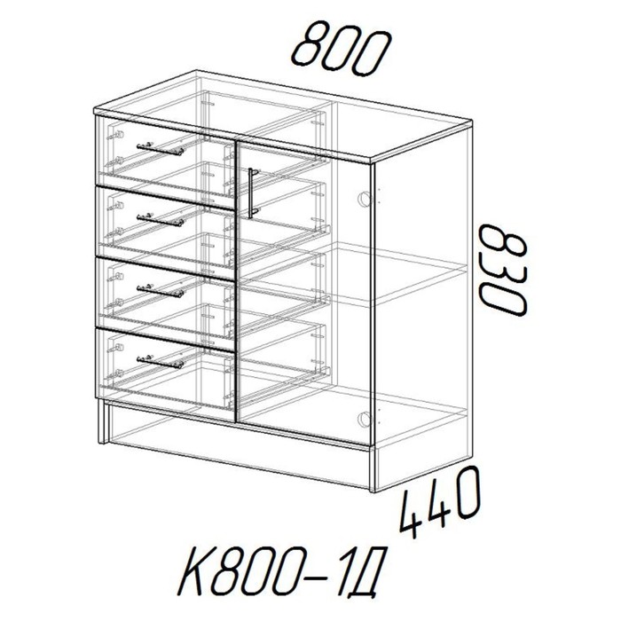 Комод для хранения «Эра. К800 – 1Д», 800×830×440 мм, цвет белый — Характеристики