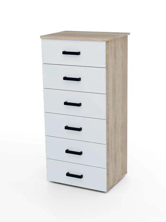 • Функциональность: Шесть выдвижных ящиков обеспечивают достаточно места для хранения вещей, сохраняя порядок в комнате.