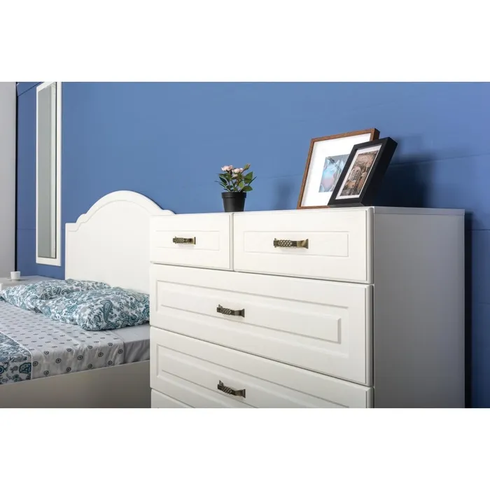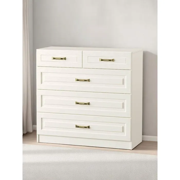 - Большим семьям: Комод с пятью ящиками предоставляет достаточно места для хранения вещей всей семьи.