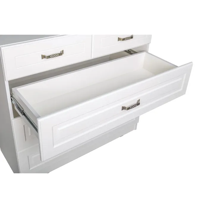 - Пять ящиков: Оснащены шариковыми направляющими, что обеспечивает плавное и легкое выдвижение каждого ящика.