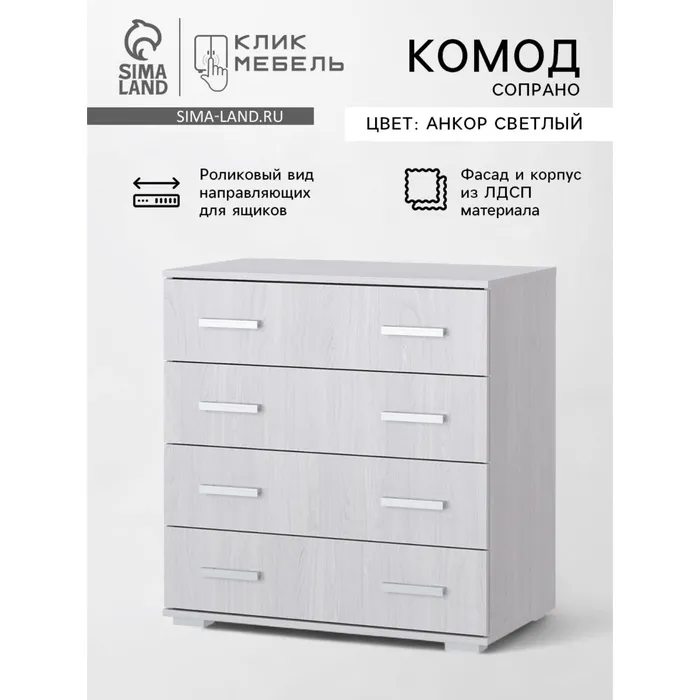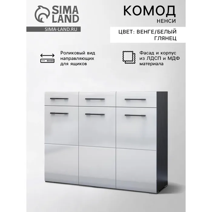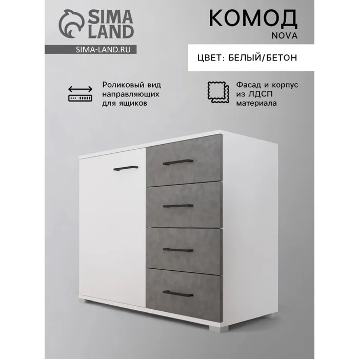 - Широкий и глубокий: Габариты комода (1001x413x953 мм) обеспечивают достаточное пространство для хранения большого количества вещей.