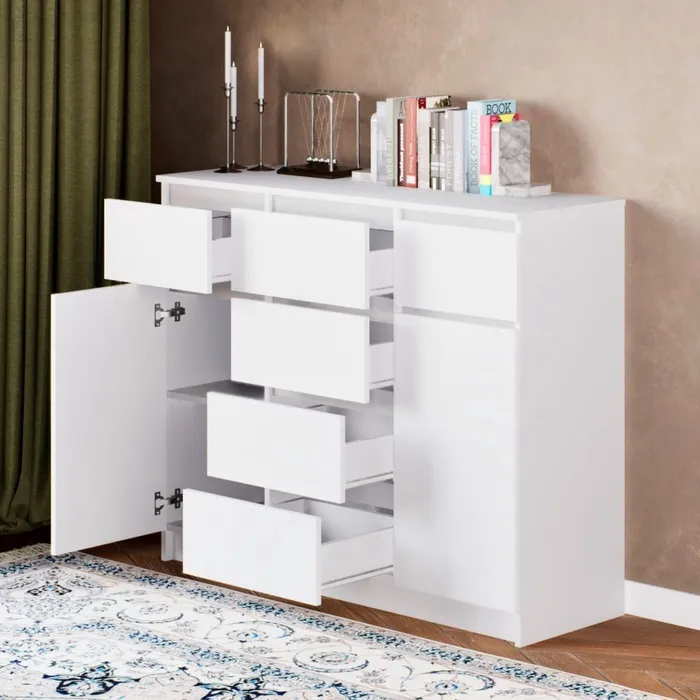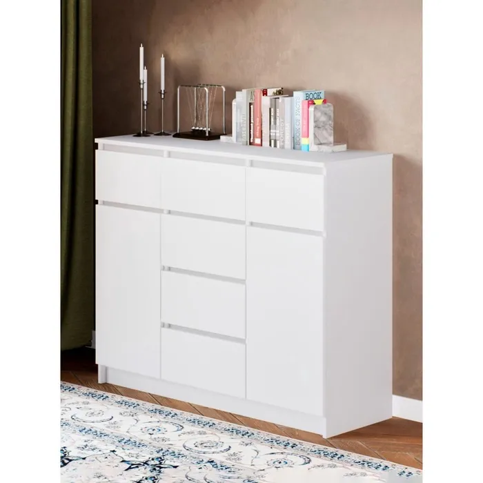 - Декор интерьера: белый цвет и современная форма комода добавят легкости и свежести вашей комнате.