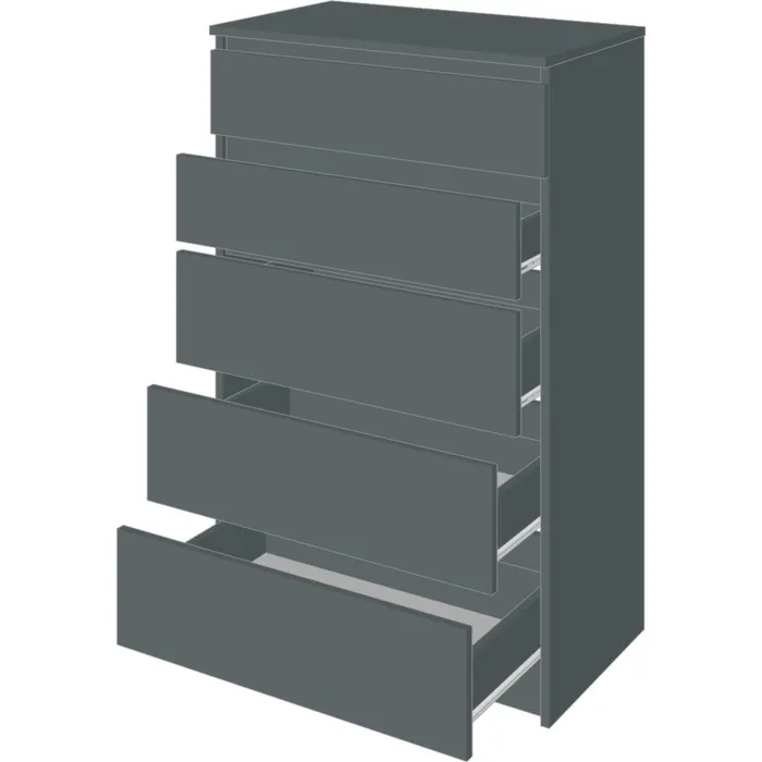 - Вместительность: Несмотря на компактные размеры, комод предлагает достаточно места для хранения благодаря пяти ящикам.
